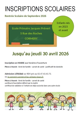 Ensuite, vous devrez prendre un rendez-vous avec l'école au 02.47.43.43.73 ou ec-prevert-cormery@ac-orleans-tours.fr